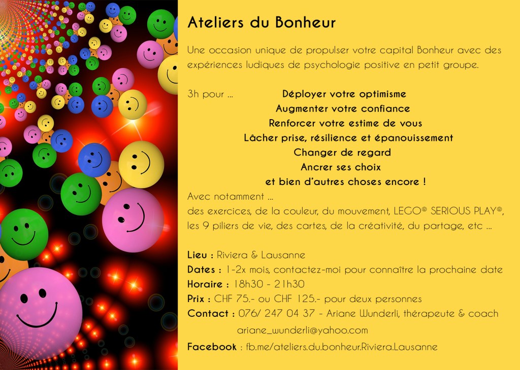 Ces ateliers reposent sur les résultats de recherches scientifiques de grands chercheurs internationaux de Psychologie Positive, mais aussi sur